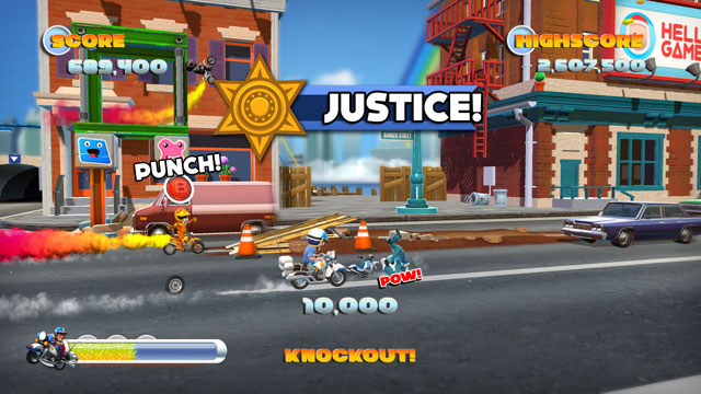 In the extremely short demo that I went hands-on with, I was able to play through four bite-sized levels which were enough to get me excited for the final product. In two of those levels I was riding the aforementioned mine cart along a set of tracks, speeding through loops and switching lanes whenever the opportunity presented itself. Another level saw me skiing across a snowy landscape, performing stunts and landing in the middle of targets to attain the highest score possible and in the final level I was riding a police motorcycle down a busy street, avoiding other vehicles while collecting tasty, pink donuts!