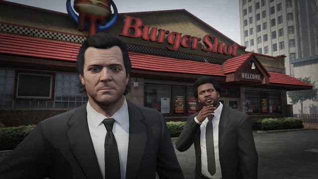 Vincent Vega and Jules Winnfield visit Burger Shot to get a Royale with cheese.