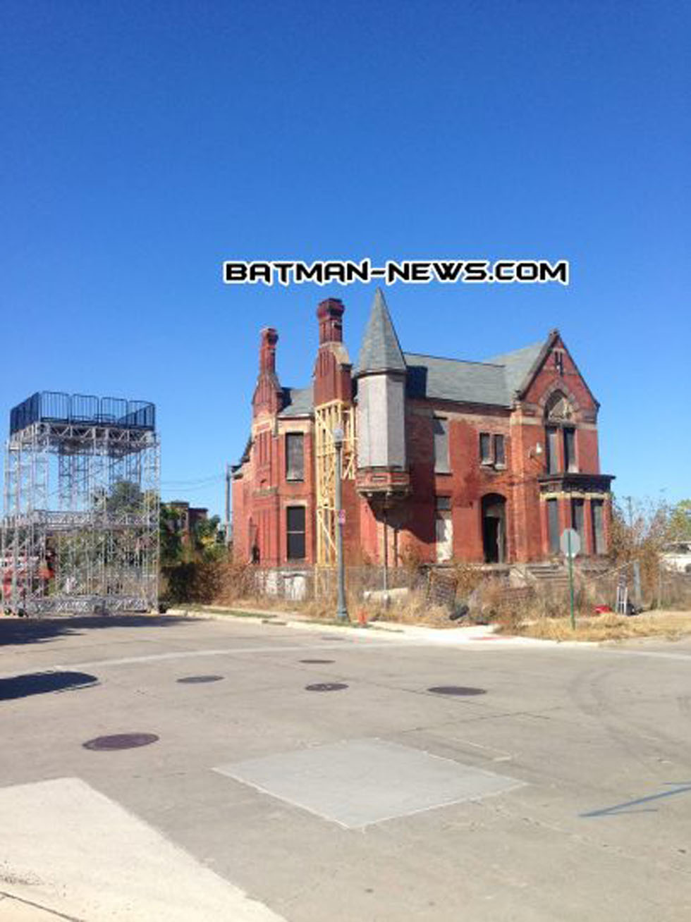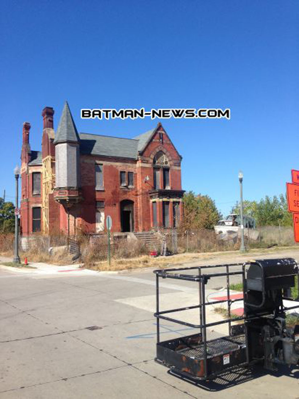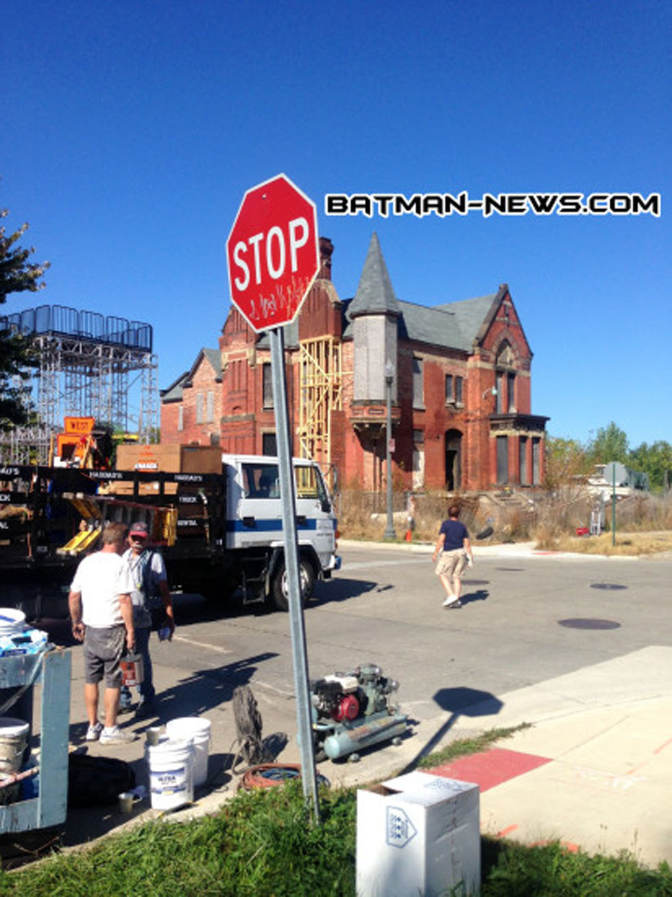 Batman News has received from photos of a possible first look of Wayne Manor. A source said he had seen the movie crew set up shop and fix up this abandoned mansion in Detroit.