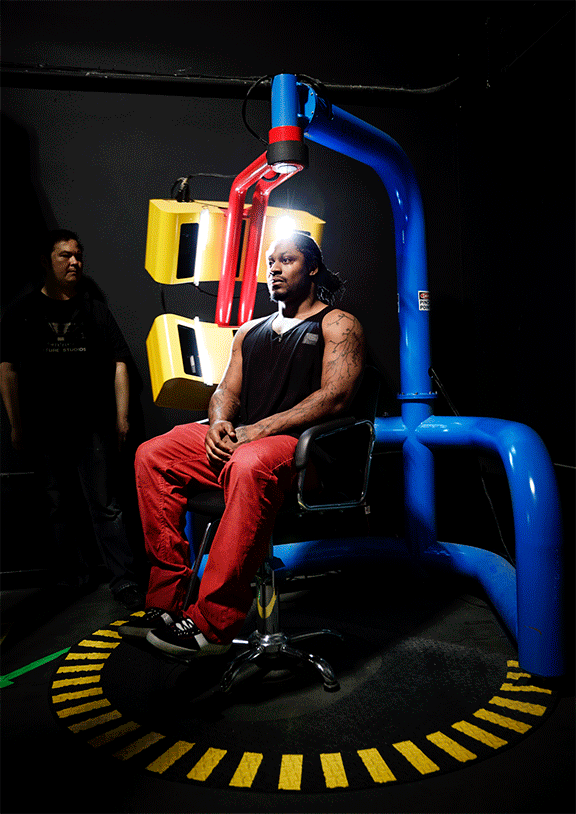 It’s the year 2065, cybernetic advancements give rise to augmented human soldiers: a new breed of badass charged with preserving life. Their mission leads them to a seedy bar in Singapore, where they encounter an underworld boss and his elite squad of mercenaries. Among them is 5-foot-11, 215-pound Seahawks’ Marshawn Lynch.