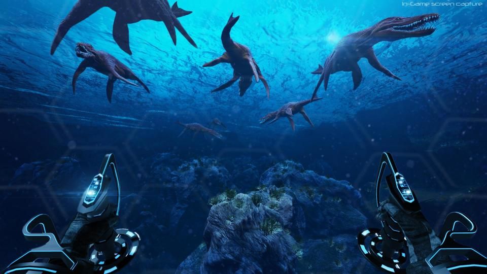 When I calmed my nerves a bit, I asked the developers about what inspired the game. They saw VR technology and wanted to create something for it. After brainstorming, they decided they wanted to do a game about dinosaurs. VR works best at 120 frames per second but considering that it would actually be 240 fps when both screens are taken into account (one screen per eye), they had to rethink how to go about creating the game. It was decided to make it run at 90fps and to set it underwater so they wouldn’t have to render everything at once. This was a case of the technology inspiring the game from inception to execution.