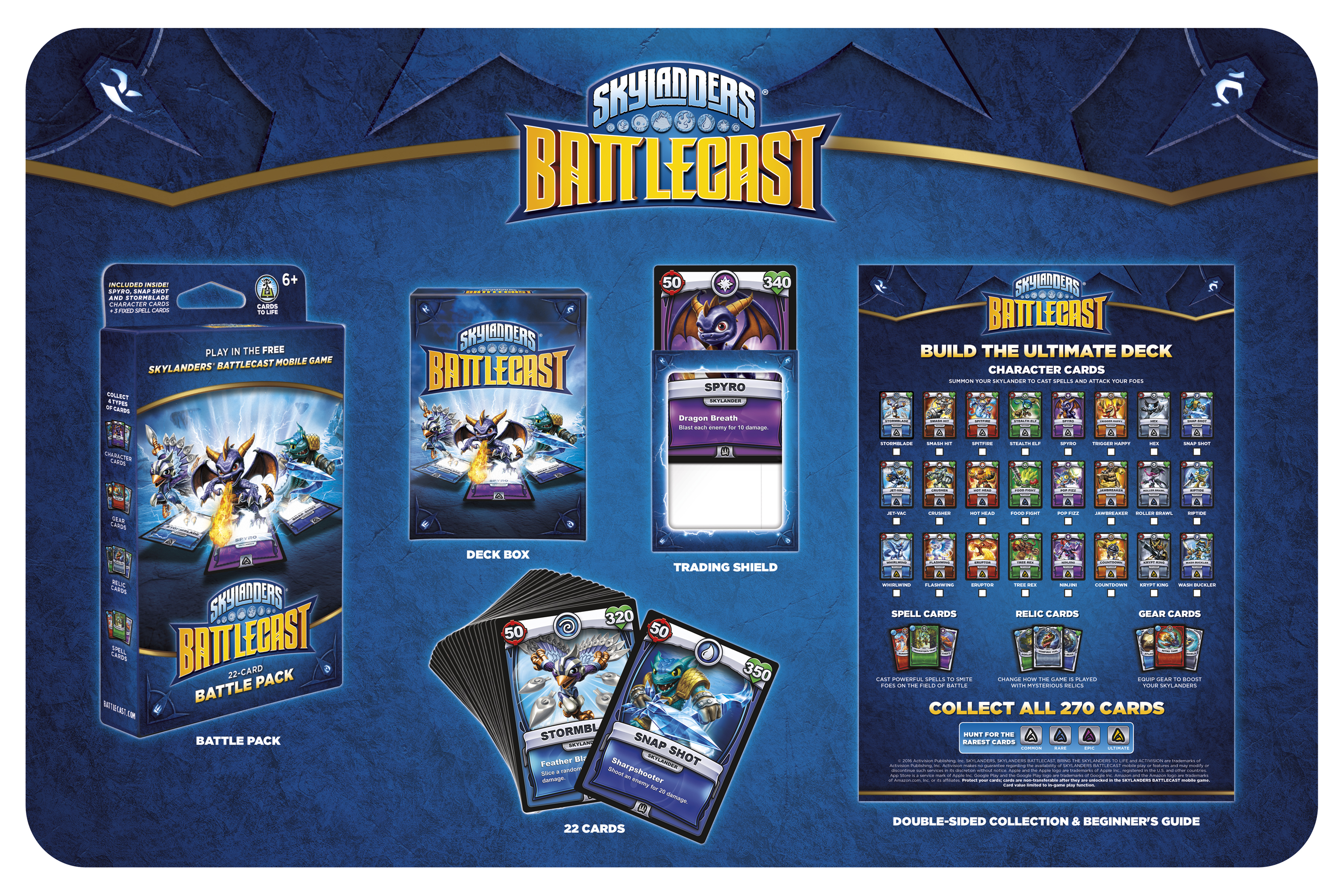 The special card packs bring Skylanders Battlecast cards to life in a magical way as players scan their physical cards with their mobile devices to watch cards spring to life through augmented reality. To amplify the experience, the game also allows players to add cards to an in-game digital spellbook. By collecting more cards, players will have more pieces to customize their deck for battle.