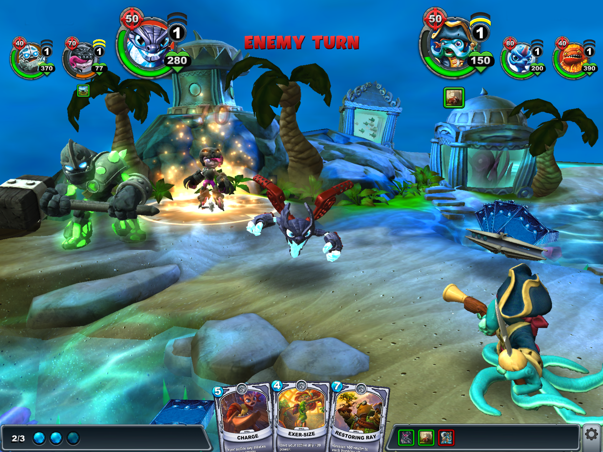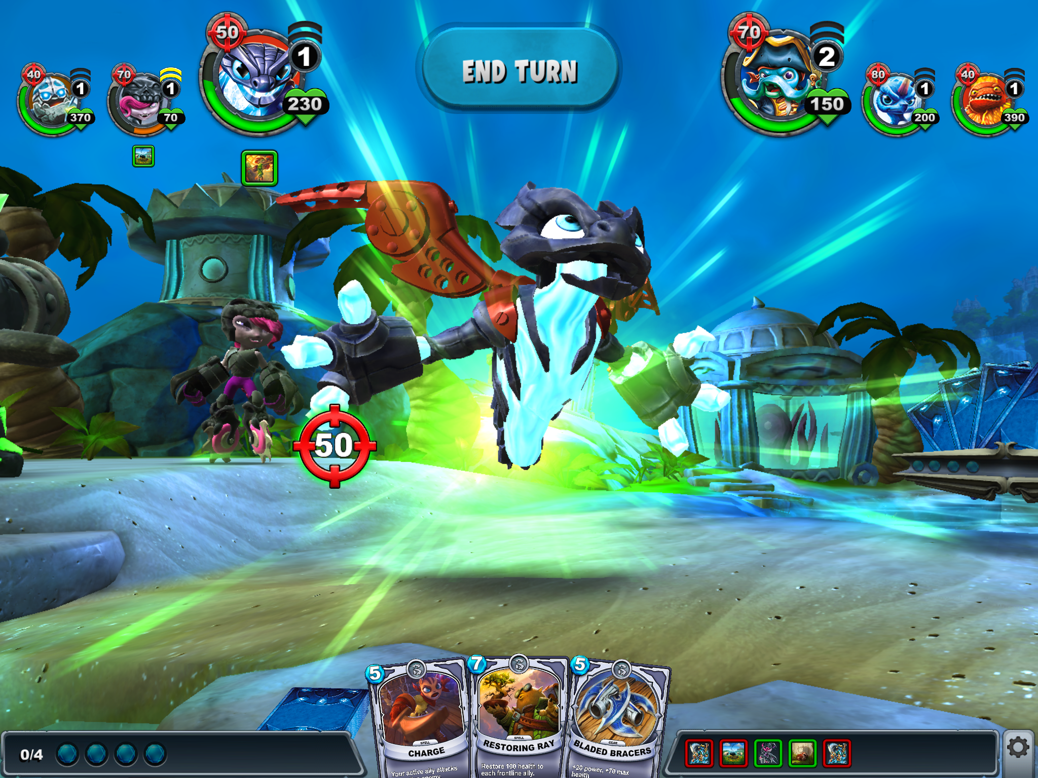 Players can collect up to 300 Character, Spell, Gear, and Relic cards, including foil variants, to fight their way through more than 60 missions across eight elemental islands. The more challenges completed within each mission, the more rewards are earned.