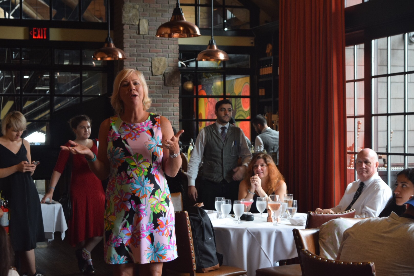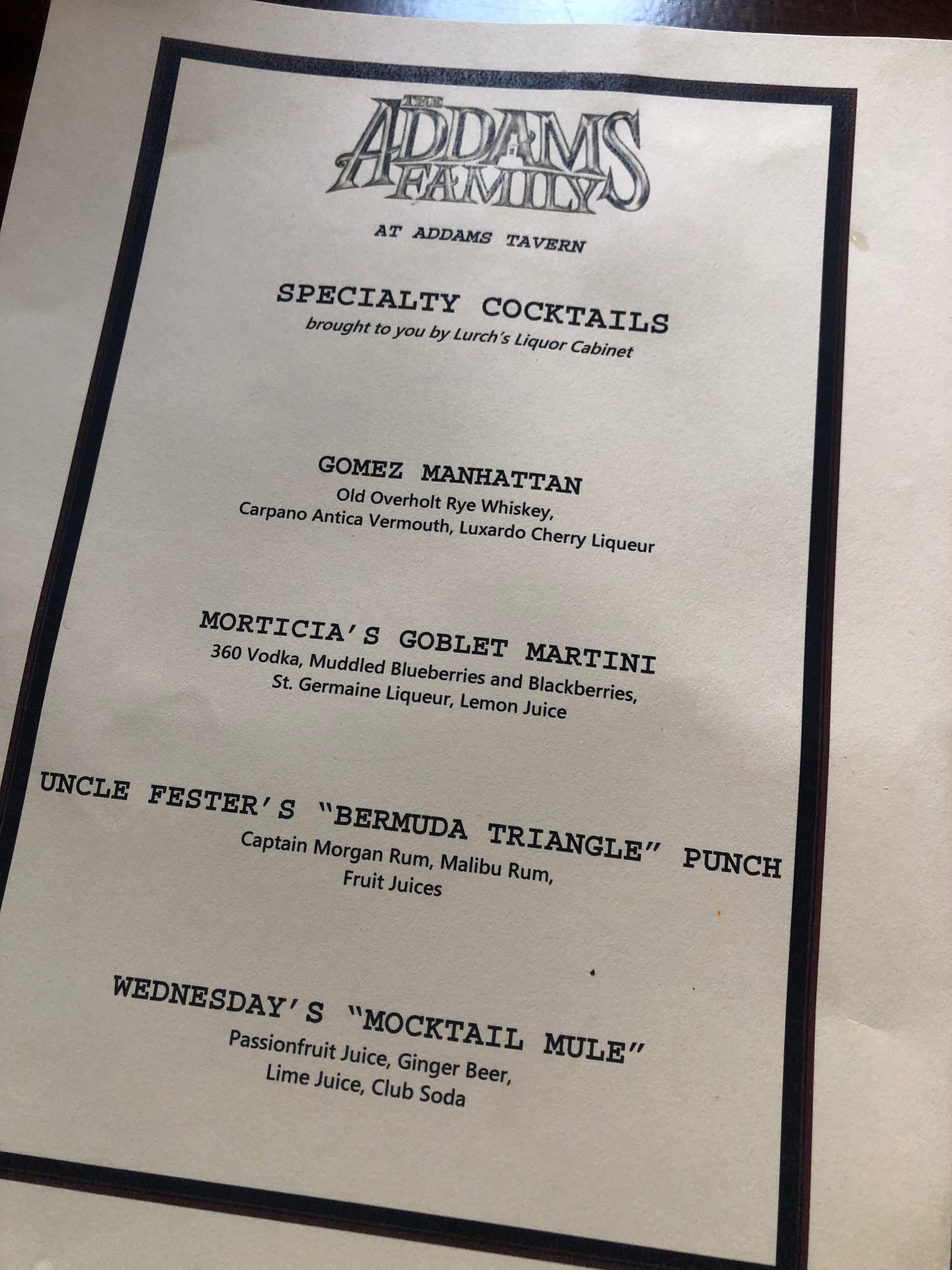 Last in our tour of downtown Westfield was the Addams Tavern, a bustling restaurant filled with tasty beverages and hearty foods. Situated between the dining area and the private rooms, we were served New Jersey’s finest of cuisines, including cocktails, appetizers, entrée and deserts. I had the shrimp cocktails from a smoking spooky glass, the crispest fried chicken sandwich with a mouth-watering sauce and fries that will make you melt into your seat. Dessert was an ice-cream sundae that would make the blackest of soul smile with happiness. Described as a “New American-inspired cooking infused with subtle smoke from the restaurant’s wood-burning grills and mesquite charcoal ovens. The menu is complemented with fresh fish, grass-fed meat, and local seasonal produce.” In simple terms, its unforgettable.